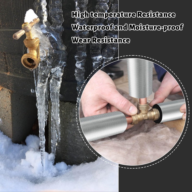 - Easy to Use: Our water pipe insulation wrap features a layer of aluminium foil on the surface,which can play a good wear-resistant effect.Foam pipe insulation is semi open, and adopts self adhesive aluminum foil design,just clamp it on the pipe directly, tear the self adhesive paper and wrap the pipe,very easy to use