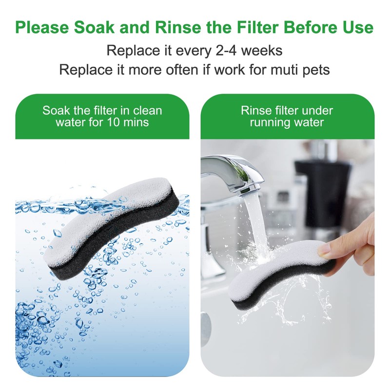 - 😺【Replace Regularly】Suggest replacing cat fountain filters every 2 to 4 weeks, please change it more often if your water fountain serve for multiple pets.