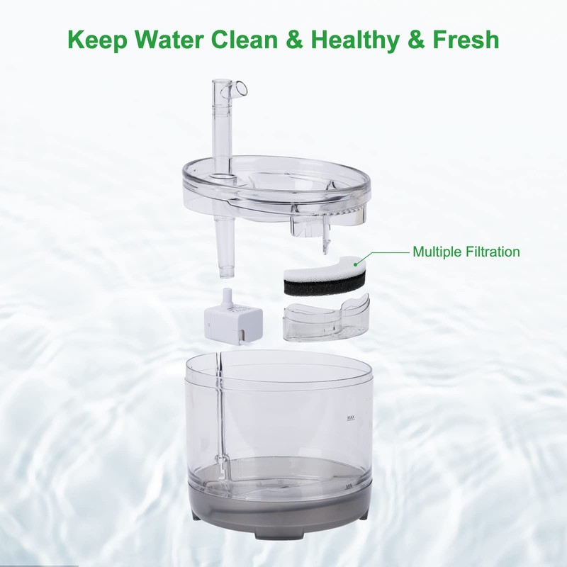 - 😺【Protect Water Pump 】Cat fountain filter is easy to remove and replace, filter circulation structure from top to bottom, can prevent hairs and residue from entering into water pump, extend the life time of your fountain pump.
