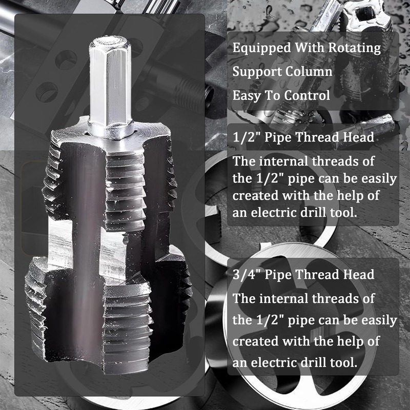 - Multi-Size Universal Kit Design: The kit provides three types of pipe external thread molds (standard sizes 1/2", 3/4", 1") and pipe internal thread molds (standard sizes 1/2", 3/4"), covering most pipe operation needs, and suitable for a variety of materials such as PVC, plastic and water pipes.