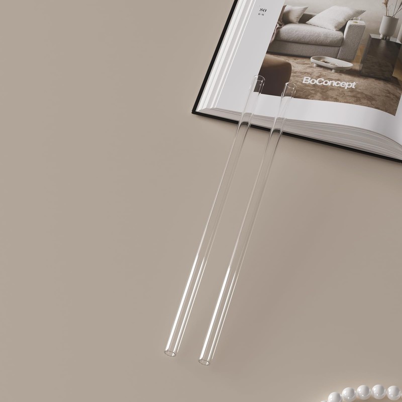 - 【PACKAGE INCLUDE】- 4pcs straight glass straws + 4pcs bent glass straws + 2pcs straw brushes. Straw size: 9.84’’ (250mm) long and 10mm wide. Brush size: 8’’ (200mm)