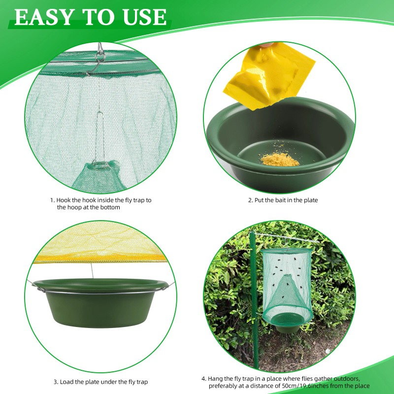 8 pcs Reusable Insect Killer Net Cage Trap Ranch Pest Hanging Catcher Green US