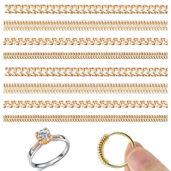 8 Pcs Ring Size Adjusters - 2 Sets of 4 Sizes, Invisible Ring Adjusters for Daily Wear, Loose Ring Size Adjusters Fit Almost Any Ring, Resize, Tighten and Secure Your Favorite Jewelry (Gold)