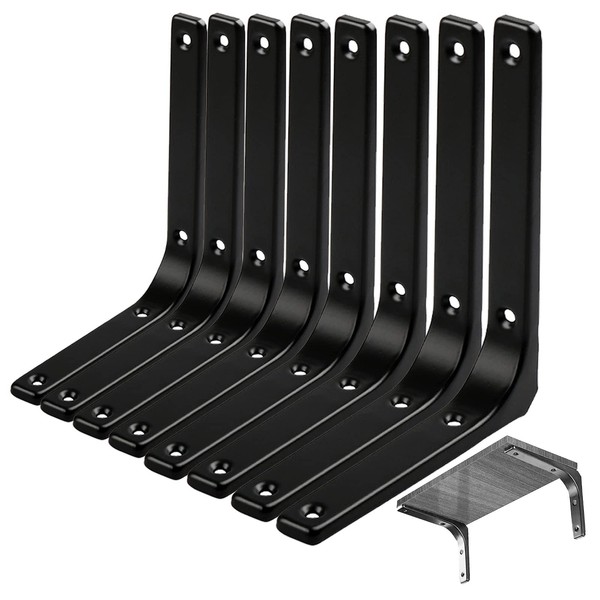 8 pcs Shelf Bracket , Triangle Support Wall Hanging,Space-Saving DIY Triangular Corner Brace Angle Brackets (Matte Black, 150mm x 125mm)