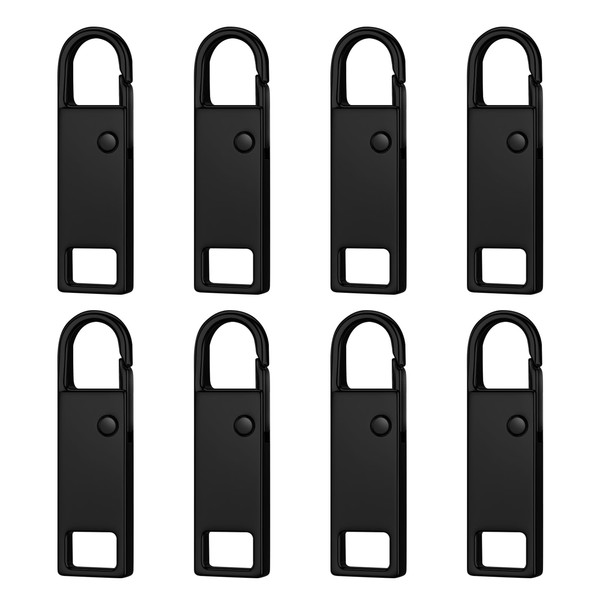 8 PCS Zipper Handle Mend Fixer Tab Metal Zipper Pull Replacement for Luggage Clothing Jackets Boots (Black)