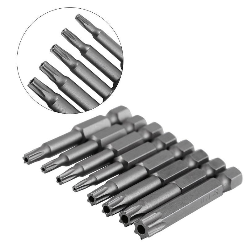 8-Piece 1/4 Inch Hex Shank T8-T40 50 mm Long Magnetic Security Star Screwdriver Bit Set Made of Steel
