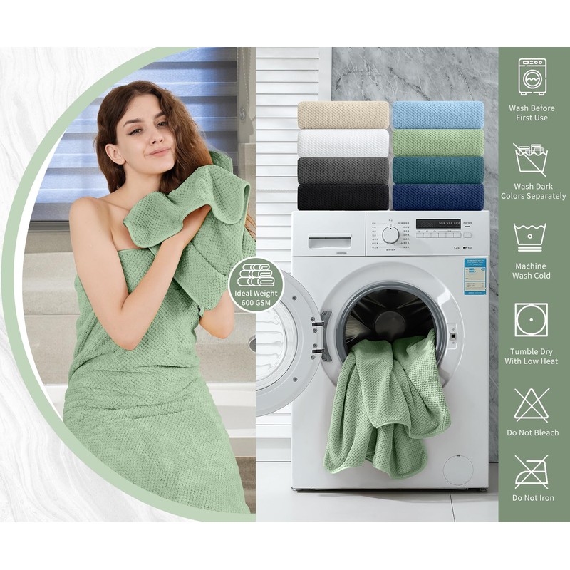 - CARE INSTRUCTIONS:wash before use,Machine wash in cold,Tumble dry low,Do not iron,towels can absorb 10 times their weight in water makes quick drying large surface ,This towel can be washed and reused hundred of times which remain soft after multiple wash and dry cycles.