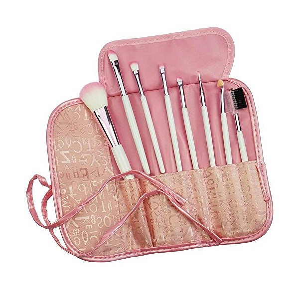 8 Piece Cosmetic Brush Set with Pink Bag Kosmetex