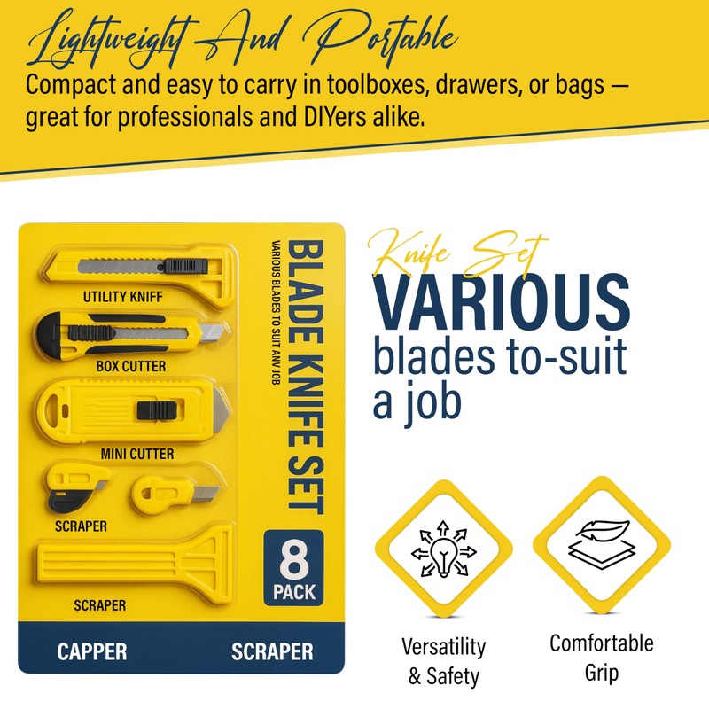 8-Piece Precision Blade Tool Set – Multipurpose Cutting Tools for Home, Office, Crafts, and Packaging