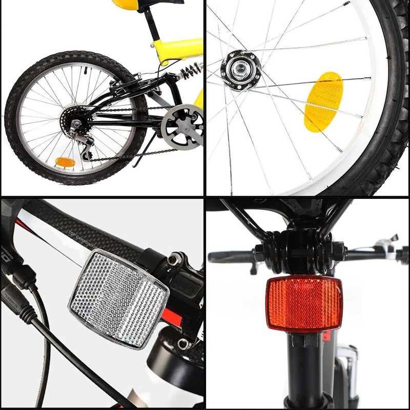 - The package includes: 2 x bicycle reflectors and rear (white, red), 4 x bicycle reflectors (cat eye) (4 x yellow), and 1 x screwdrive and 8 m reflective strips. Please check before purchase whether the dimensions match.