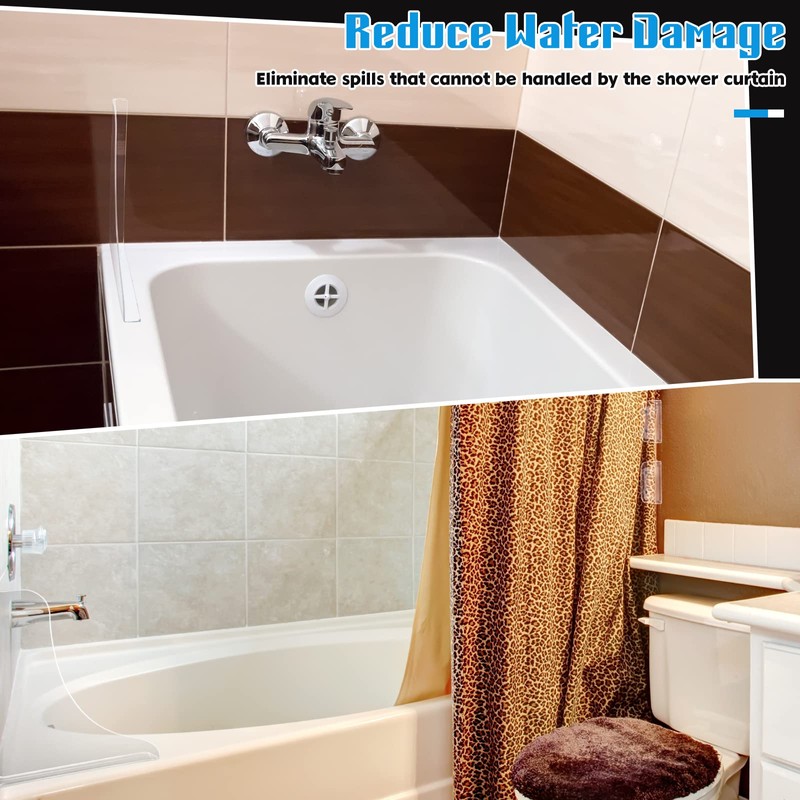 - What You Get: the package includes 2 pieces of bath splash guards and 6 pieces of clear adhesive shower curtain clips, which will be helpful to keep water from spilling out of the bathroom, keeping the outer space dry