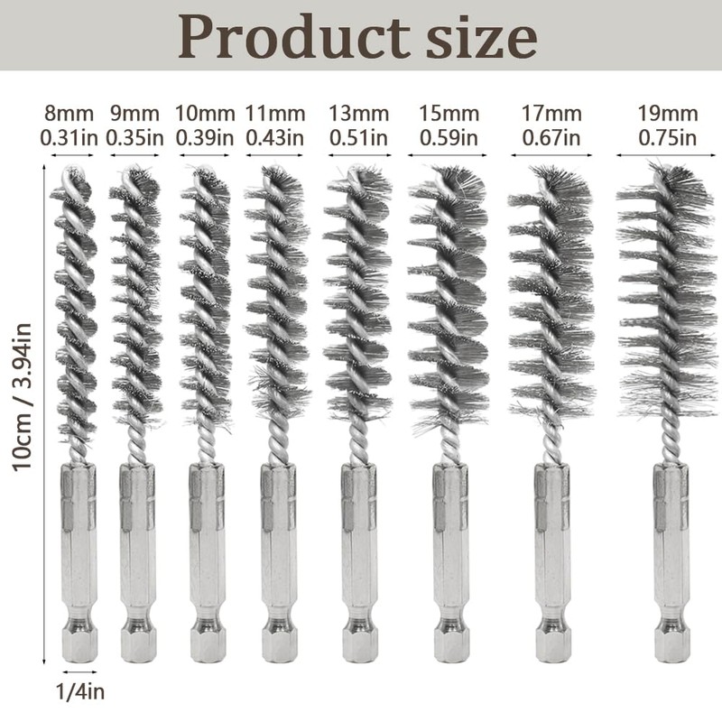 - [Easy to Use]:Each bore brush is equipped with a 1/4-inch hexagonal shank,which can be easily installed on the drill bit,and can easily enter narrow holes and narrow areas.You can connect them to any electric drill or abrasive grinder for effective cleaning