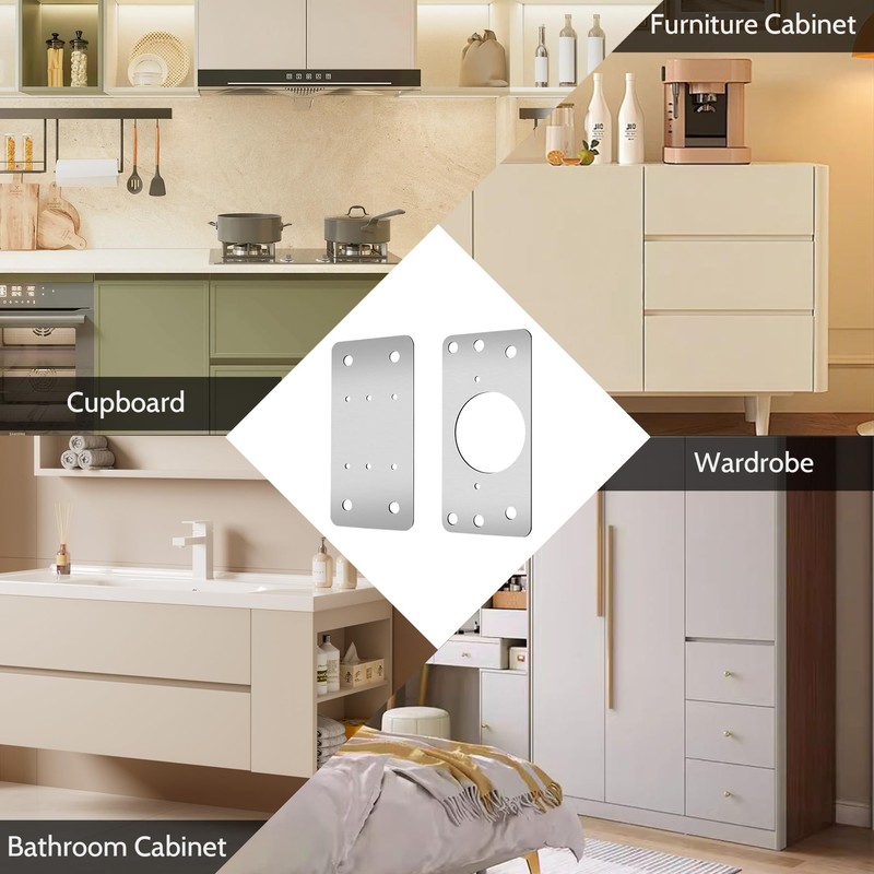 - Universal use – whether kitchen cabinet, wardrobe, chest of drawers, shelf or TV furniture – these repair plates are your versatile helper for almost any piece of furniture with hinges
