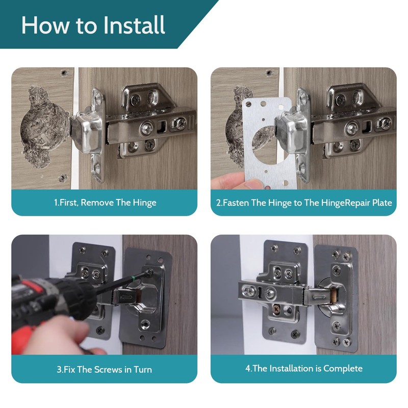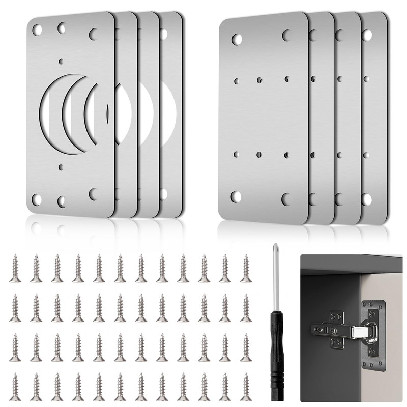 - Universal use – whether kitchen cabinet, wardrobe, chest of drawers, shelf or TV furniture – these repair plates are your versatile helper for almost any piece of furniture with hinges