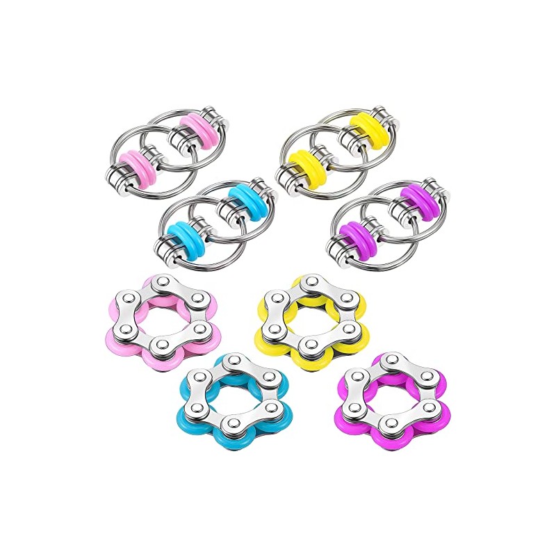 8 Pieces Fidget Toys Set Includes 4 Flippy Roller Chain and 4 Six Roller Bike Chain Toys Set for Suitable for Adults and Teenagers in Learning Help (Purple, Pink, Yellow, Light Blue)