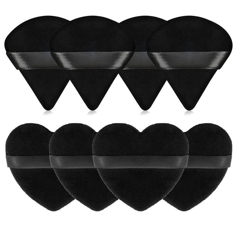 8 Pieces Powder Puffs Face Cosmetic Powder Puff Washable Reusable Soft Plush Powder Sponge Makeup Foundation Sponge for Face Body Loose Powder Wet Dry Makeup Tool,Heart Shape + Triangle, Black