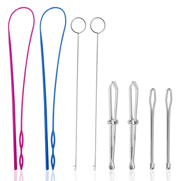 • What you receive: Package comes with 2 pieces plastic drawstring threader, 2 pieces Stainless Steel Sewing Loop Turner Hook, 2 pieces metal drawstring threader and 2 pieces metal tweezers, 8 pieces in total.