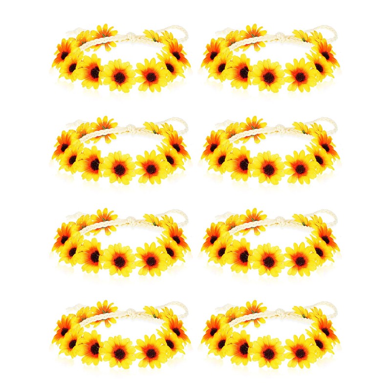 - Contenido del paquete: incluye 8 coronas de girasol, estilo de diseño elegante y romántico que te hace lucir más hermosa y encantadora