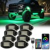 8 Pods Metal RGBW Rock Lights,LED Pure White underglow Lights for Truck Jeeps ATV UTV Golf Cart RZR SXS Offroad,IP68 Waterproof Metal Multicolor Neon Underglow Kit with APP/RF Remote Music Mode,12V