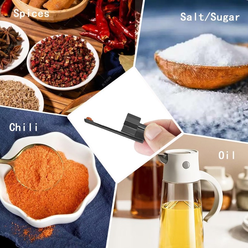 - El diseño compacto y ligero se puede guardar fácilmente en tu bolsa o bolsillo, perfecto para viajar o en casa para organizar rápidamente las especias, regalando dos pequeños embudos para especias más convenientes en botellas.