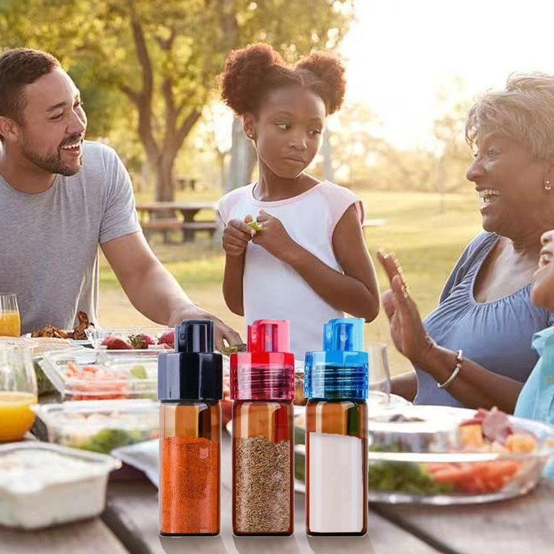 - Fácil de usar: el pretzel mini de viaje es café, la tapa tiene 4 colores, y el cuerpo de la botella tiene 2 colores, lo que es conveniente para distinguir diferentes especias; el diseño de la cuchara en la tapa te permite quitar fácilmente el condimento de la botella.