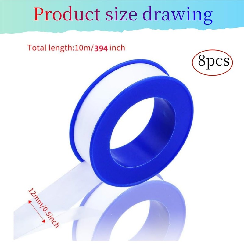 - 【Package Contentsn】: You will get 8 rolls PTFE plumbers tape, the color is white. The size of each roll of sealing tape is 10 m*12 mm/39.37*0.047 inch.