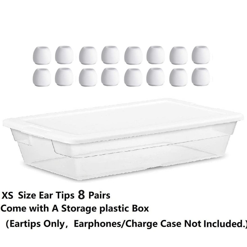 - Package includes:Ear Tips 8 Pairs(extra small Size),a Plastic Box for eartips (Ear Tips Only ,Earphones/Charge Case not included).