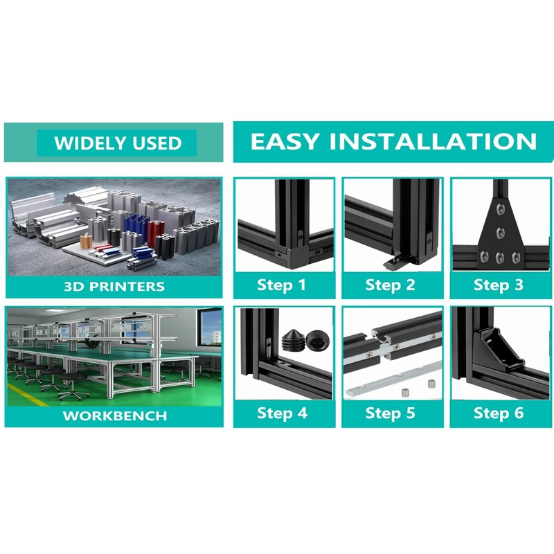 - Application scenarios: Suitable for connecting and fixing aluminum profile frames such as 3D printers, home and DIY projects, CNC mechanical equipment, workbenches, display stands, etc.