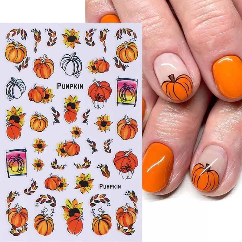 - Easy to Use: This Thanksgiving Day pumpkin nail stickers for nail art is self-adhesive. just use tweezers to tear off the cute nail stickers, and then stick the 3d nail stickers on the nail.You can also use nail gel to cover to make the beautiful stickers last longer