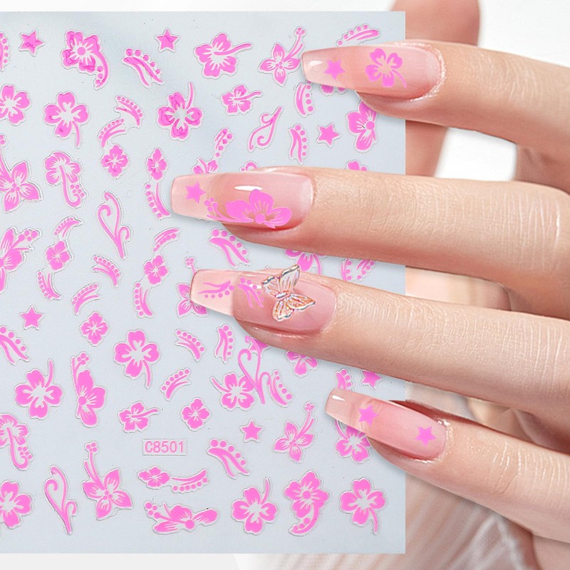8 Sheets Flower Nail Art Stickers Hibiscus Flower Nails Stickers Hawaiian Flowers Nails Decals 3D Self-Adhesive Flowers Sticker Women Nail Decoration