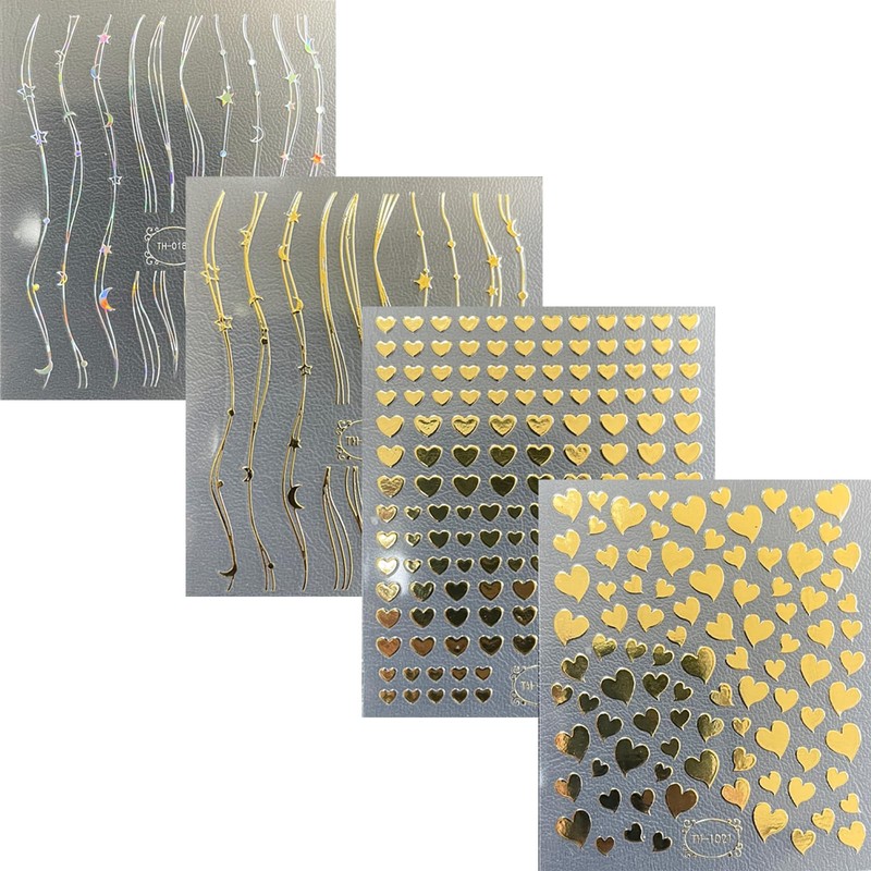 8 Sheets Irregular Line Nail Art Stickers Gold Heart Nail Stickers 3D Self-Ad...