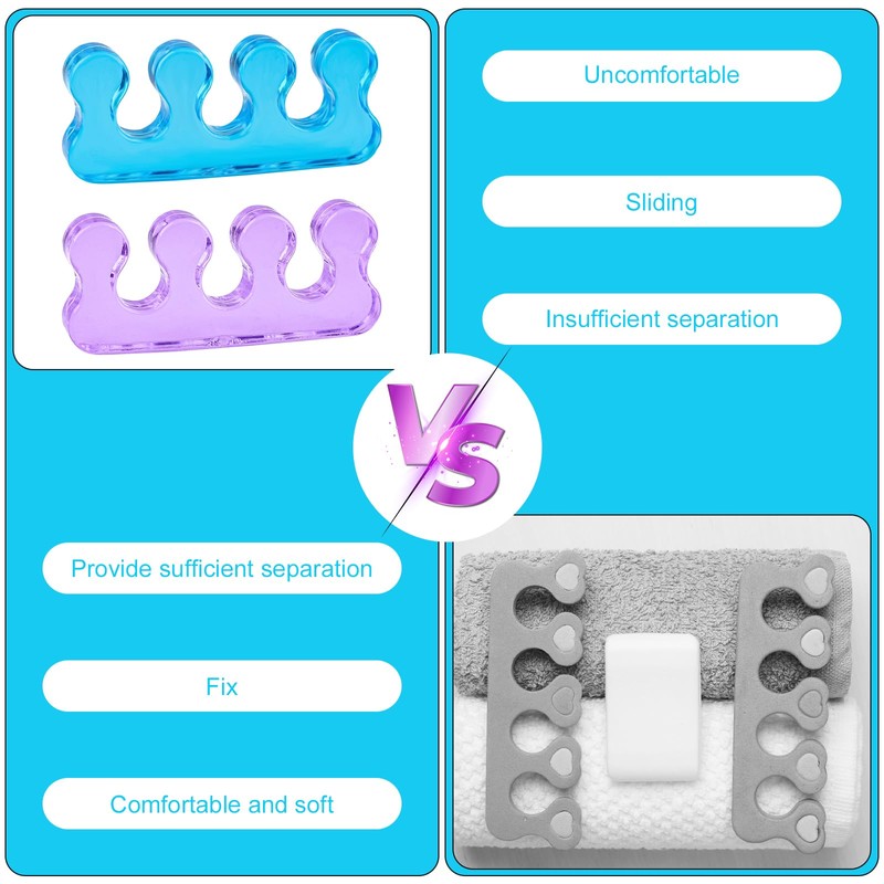 • Zuverlässiges Material: Unsere Zehenabscheider bestehen aus SEBS Material, weich, dehnbar und bequem zu bedienen.Sie sind auch waschbar und wiederverwendbar.