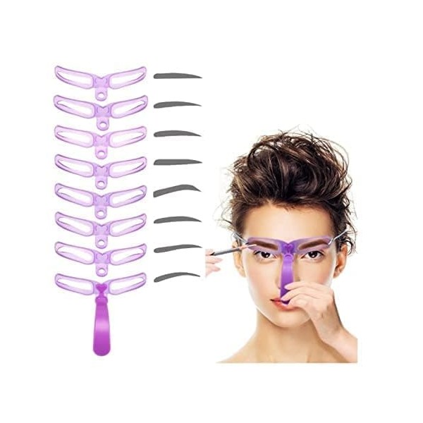 8 Styles Pouple Eyebrow Shaping Kit,Eyebrow Template, Reusable Eyebrow Stencil with Handle and Strap, Washable, Eyebrow Color, Eyes,Tools and Accessories
