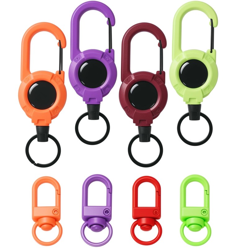 - 【Set】Enthält 4 ausziehbare Schlüsselanhänger und 4 ausziehbare Taschenanhänger für vielseitige Verwendung; Ideal für Schlüssel, Ausweise und kleine Accessoires, Robustes Stahldrahtseil mit einziehbarer Funktion für sicheren Halt.
