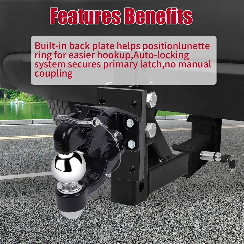 8-Ton Pintle Hook Trailer Combination Hitch Receiver 2-5/16” Hitch Ball with Mounting Kit (2-5/16” Hitch Ball)