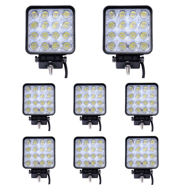 8 x 48 W LED Square Spotlight Cold White Spot IP67 Work Light (8)