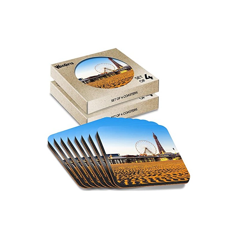 8 x Square Coasters - Blackpool Tower England UK Holiday Cork Backed MDF Glossy Tea Coffee Accessory #50296