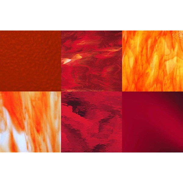 8"x5" RED Variety Pack Stained Glass Sheets (6 Pieces)