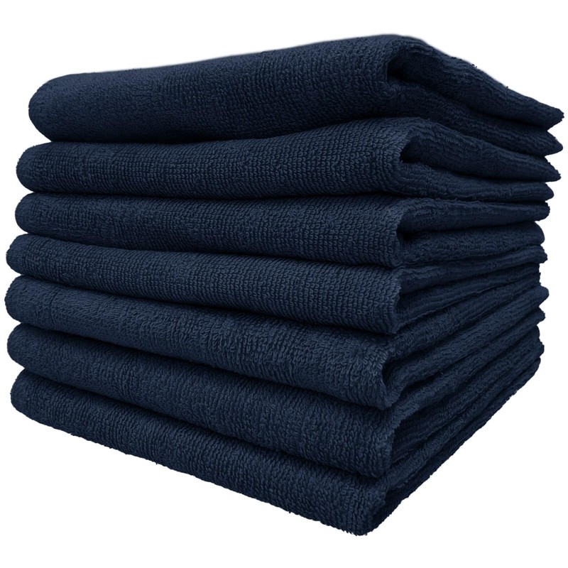 8 Year Towels, Face Towels, 13.4 x 33.5 inches (34 x 85 cm), 100% Cotton, Thin, Quick Drying, Highly Absorbent, Durable, No Bulk, Navy, Set of 7