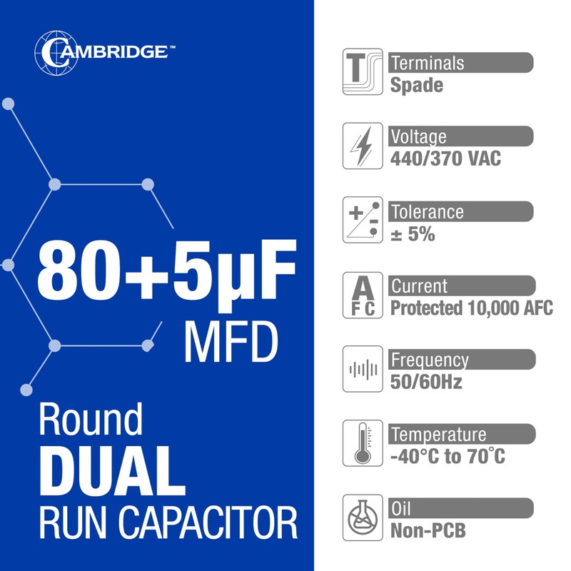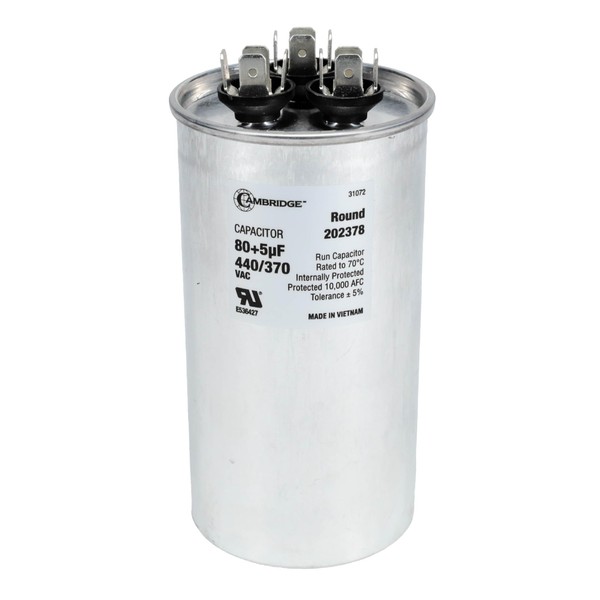 - Cambridge 80+5μF ± 5% 440/370 VAC dual round run start AC capacitor