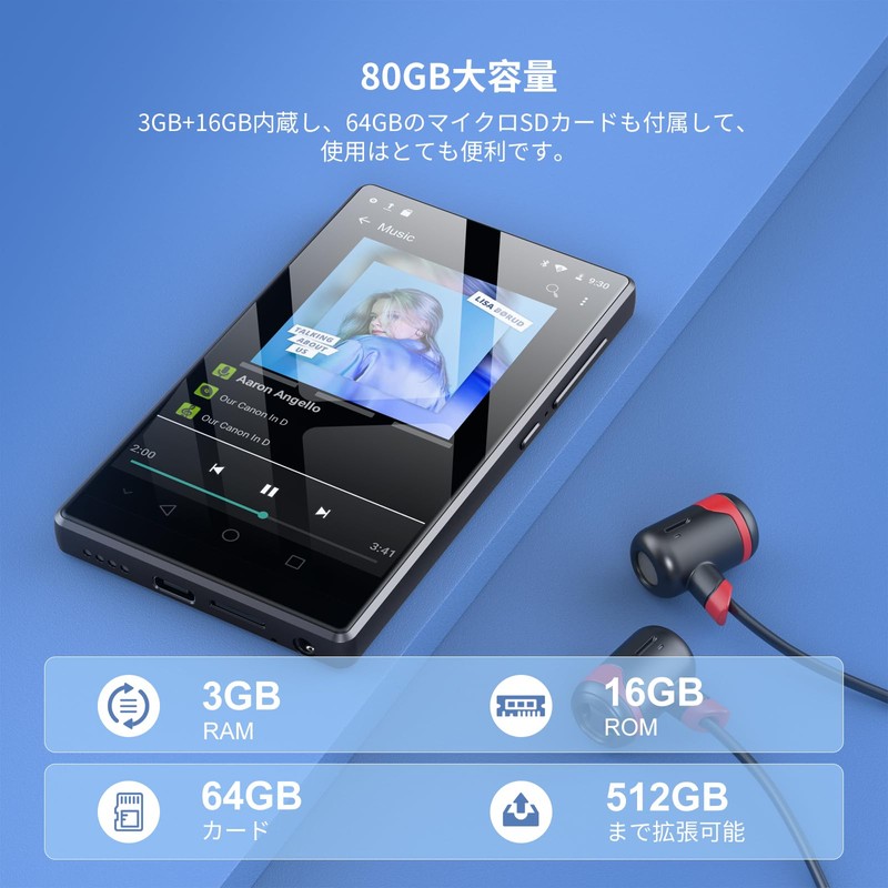 - Faster Octa Core & 80 GB Large Capacity: Built-in 3 GB + 16 GB / 64 GB TF Card: The SWOFY mp3 player is equipped with a high performance 8-core processor and 3 GB RAM, so it can work faster. 16GB ROM is enough to install various apps such as Facebook, Twitter, Amazon Music, Spotify, Pandora, Google Play Store, Kindle, etc. It also comes with a 64GB Micro SD card that can be expanded up to 512GB (sold separately) so you can easily store large amounts of videos and photos