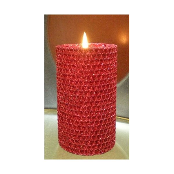 80 Hour-6 Inch Natural Beeswax Hybrid Pillar Glitter Candle, Ruby Red Color