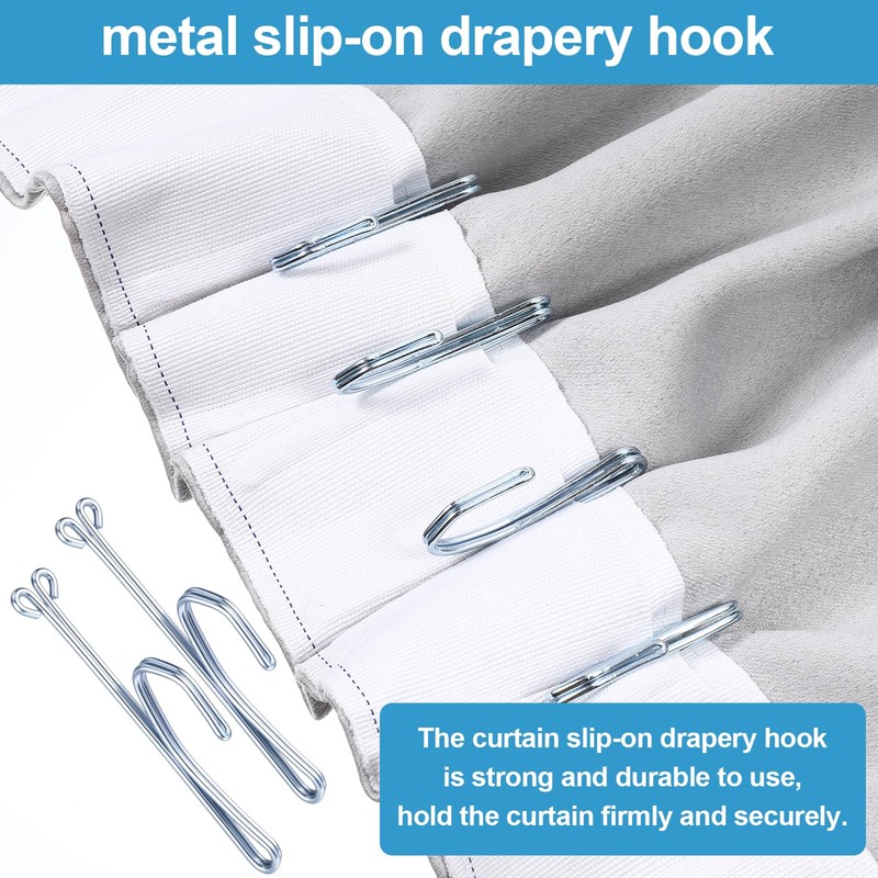 - 【High Quality Material】- The metal slip on drapery hook is made of rust-proof stainless steel, ensuring quality, sturdiness and durability. Suitable for h hanging heavy curtains, draperies as well as light weight sheers.