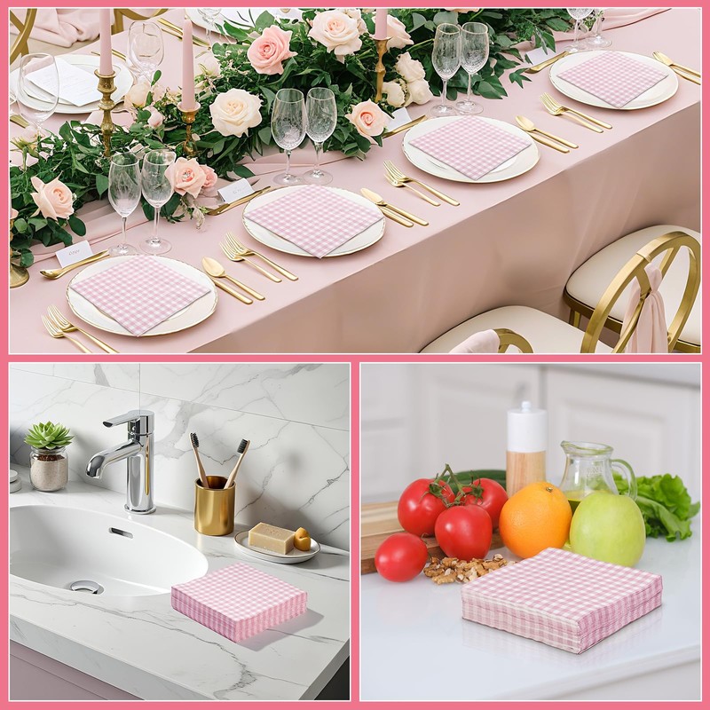- Package Includes:You will get 80 pcs pink gingham napkins, which are enough for your daily life or party time use. Pink checkered napkins suitable for decorating dessert plates, cocktail, beverage and dinner table
