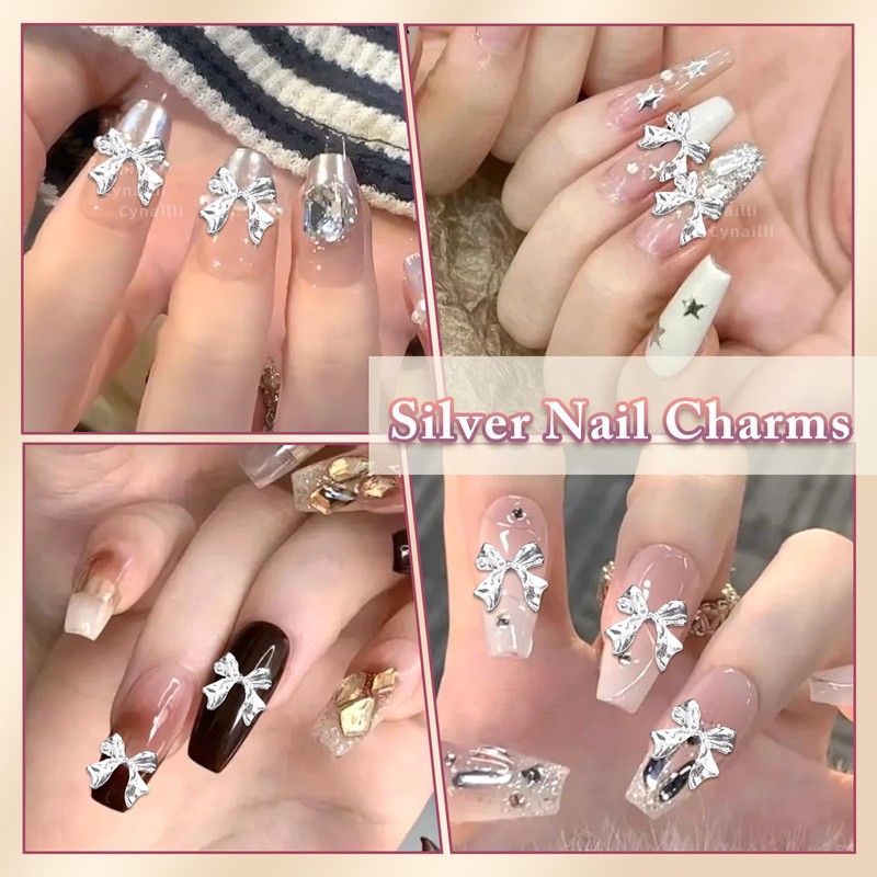 - Bow Nail Charms: You will get 80 pcs silver bow charms for nails. Enough quantity and styles alloy nail bow charms for your daily nail art needs