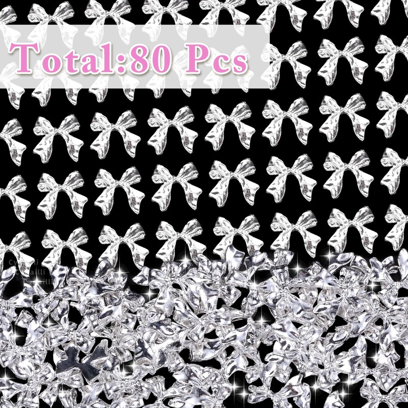 You will get 80 pcs silver bow charms for nails. Enough quantity and styles alloy nail bow charms for your daily nail art needs