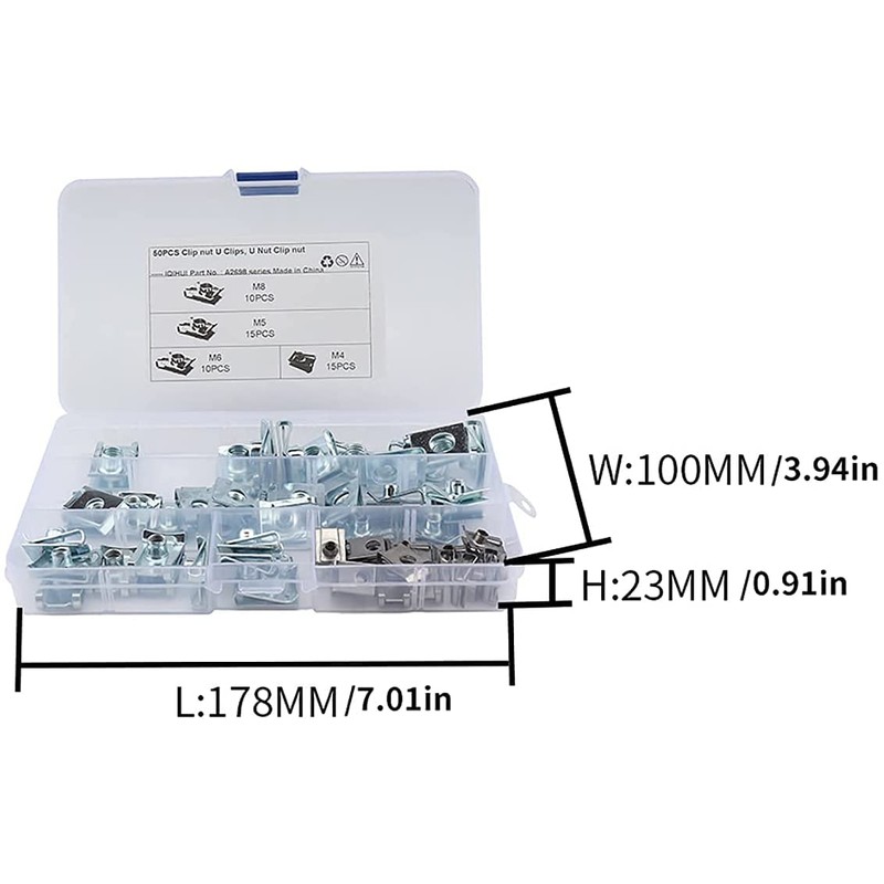 2. 80 Packs U-shaped clips and screw sets contain four common sizes and corresponding screws, a total of 80 pieces. The reed nut set contains a variety of common dimensions to meet your different assembly and needs.