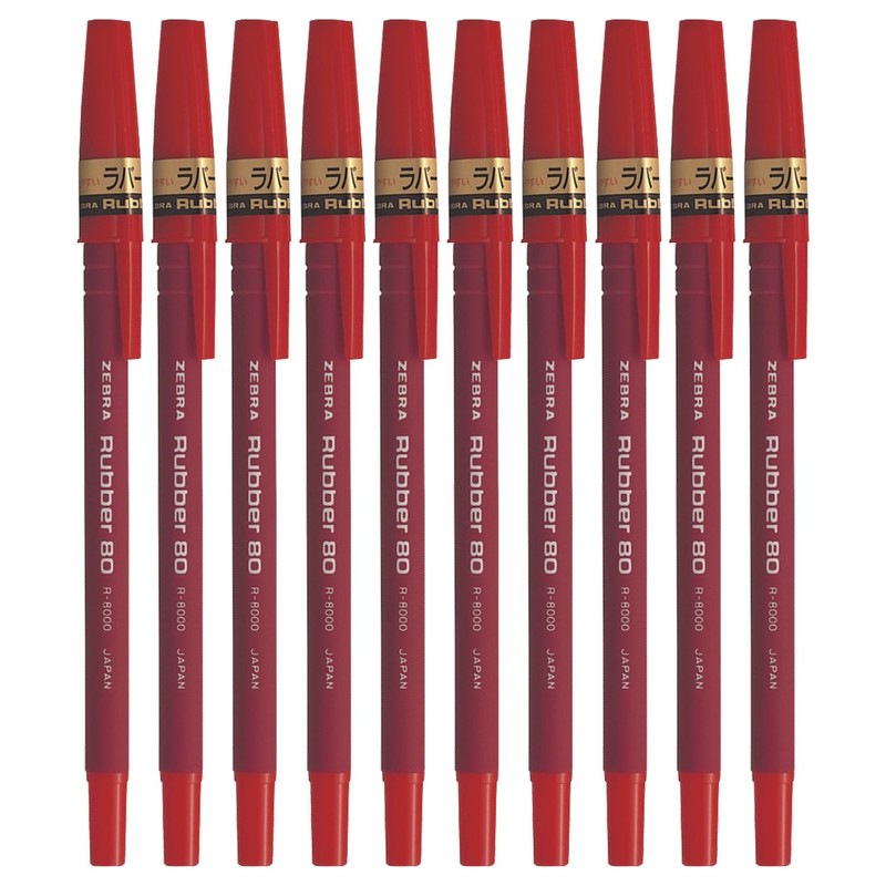 ゼブラ ラバー80ボールペン 赤 R-8000-R アカ 10個セット