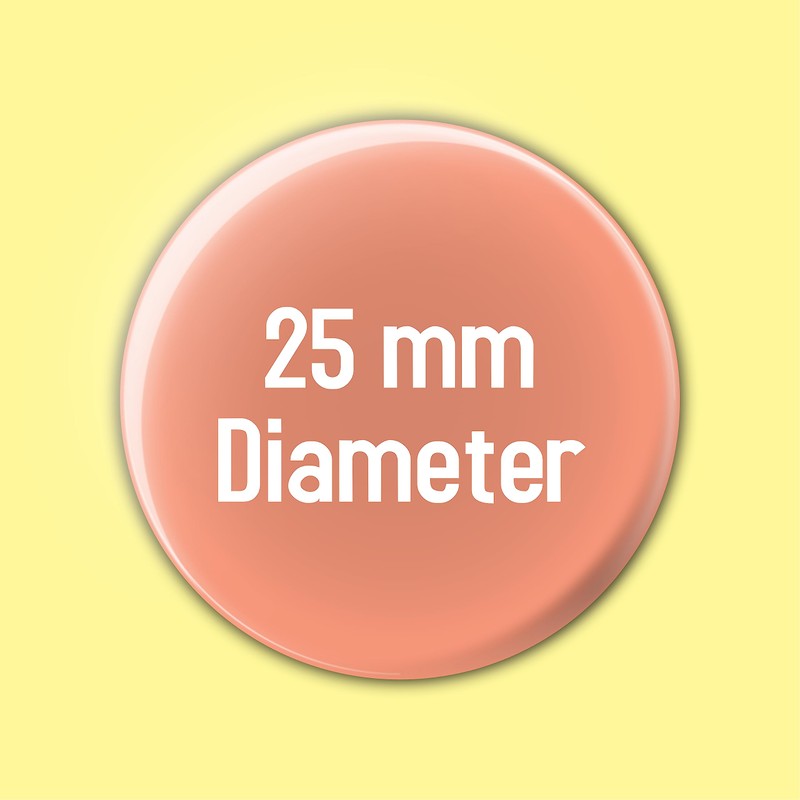 • MINI BADGES: 25 mm diameter badges with standard pin back fastening