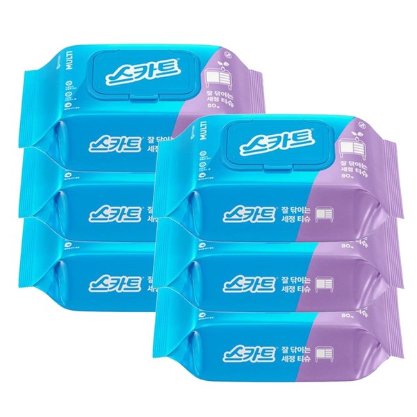 80 sheets x 6 cleansing wipes / 스카트 잘닦이는 세정티슈 80매 x6개